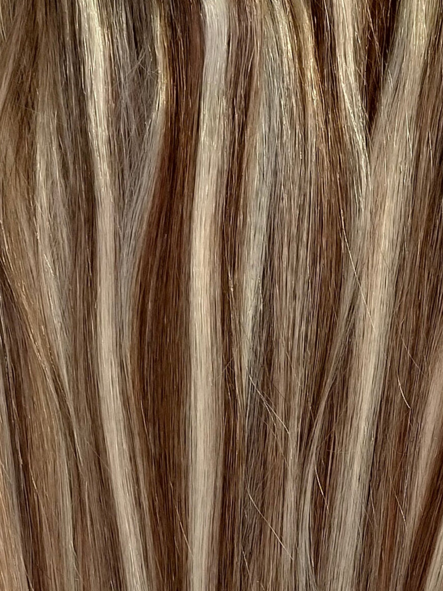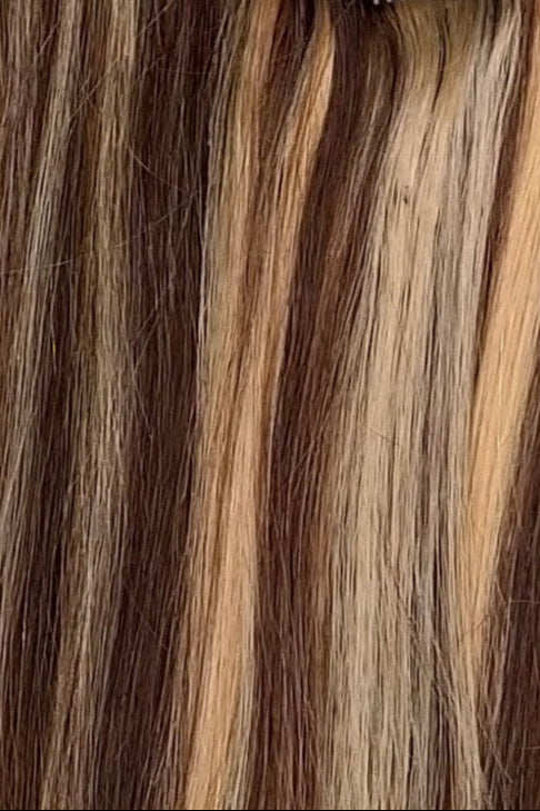 Warm honey brown base with creamy blonde tones — soft, glowy, and flattering.